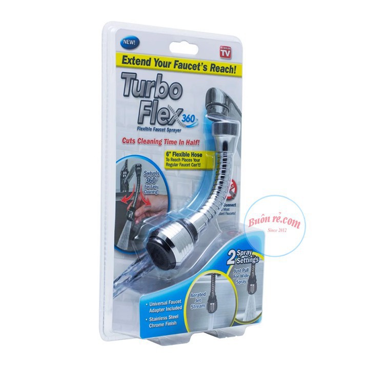 Đầu vòi xịt nước tăng áp cho vòi bồn rửa Turbo Flex thiết kế dạng vòi sen dùng để điều chỉnh dòng nước ở bồn rửa giúp bạn rửa chén bát, rau củ, thực phẩm… tiện lợi dễ dàng hơn.