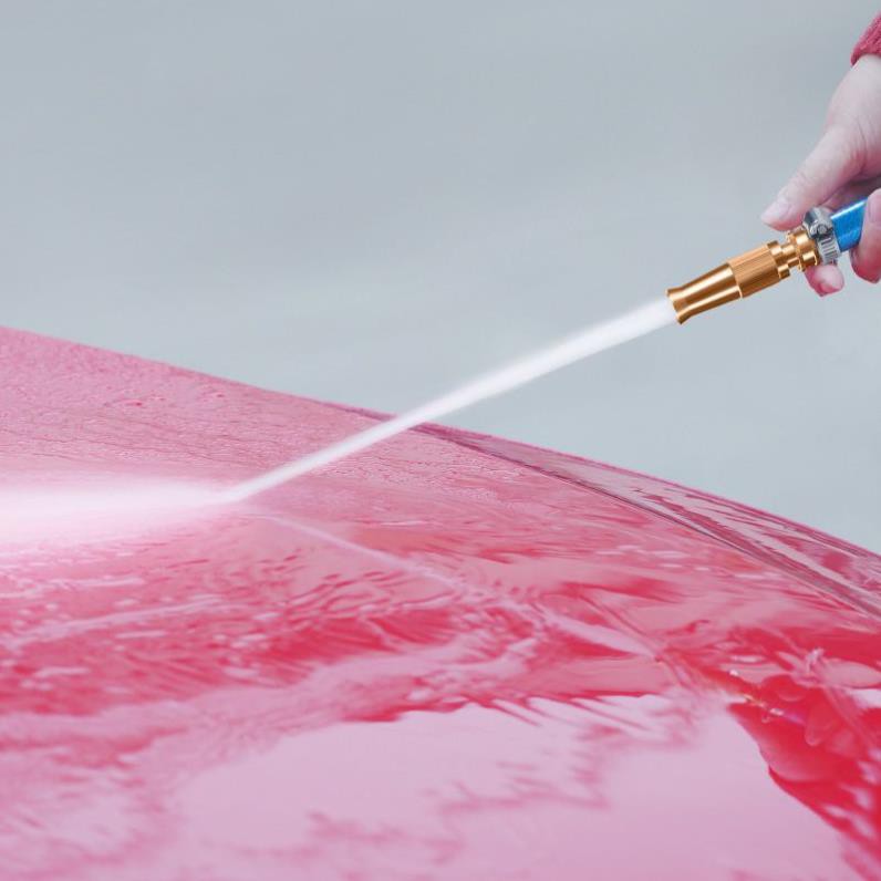 - Đầu phun nước tăng áp của súng có thể phun xịt ở khoảng cách xa, lực nước càng mạnh thì xịt càng xa. Bạn có thể vặn đầu phun để chỉnh súng phun thành 1 tia nước để rửa xe hoặc tưới cây từ xa hoặc phun gần dưới dạng chùm phun xoè.