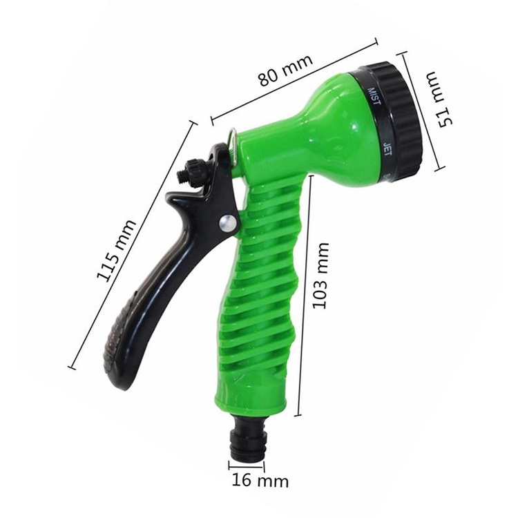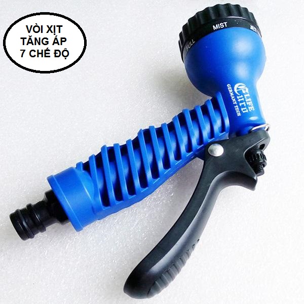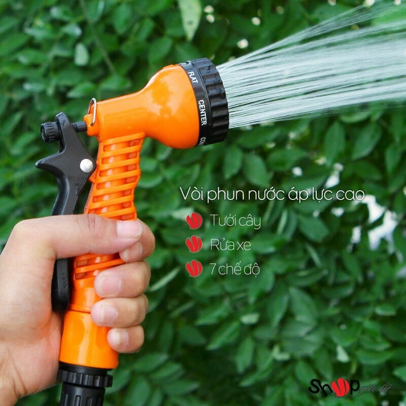 - Vòi xịt tăng áp lực nước 7 chế độ đa năng sử dụng để vệ sinh nhà cửa, rửa xe, tưới cây,...