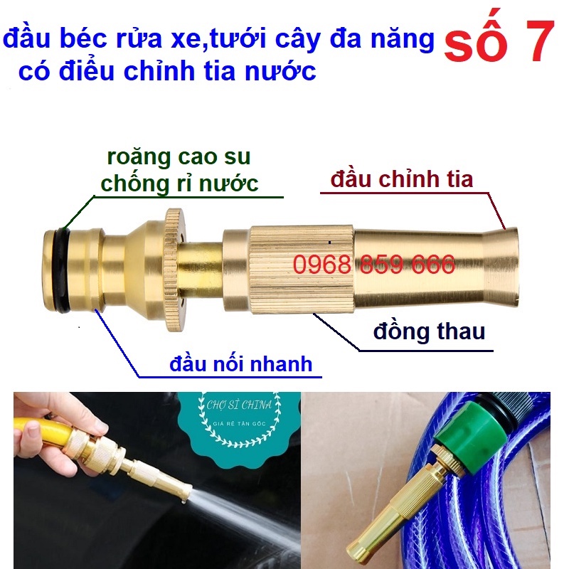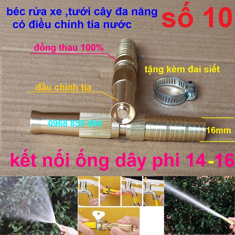 -đầu vòi số 2,3,8,9,10 tặng kèm đai siếtĐầu vòi xịt tăng áp mini Đầu vòi tăng áp đa năng bằng đồng tưới cây rửa xe cực mạnh kèm đai siết ống