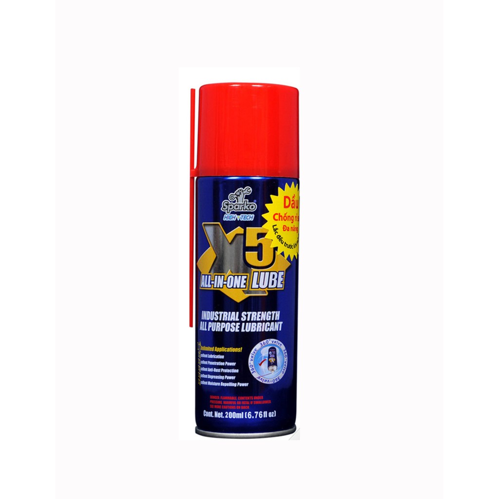 Ô tô > Dầu nhớt và phụ gia ô tô > Mỡ & Chất bôi trơn || Dầu xịt bôi trơn, chống rỉ sét đa năng Sparko X5 200mlCòn hàng