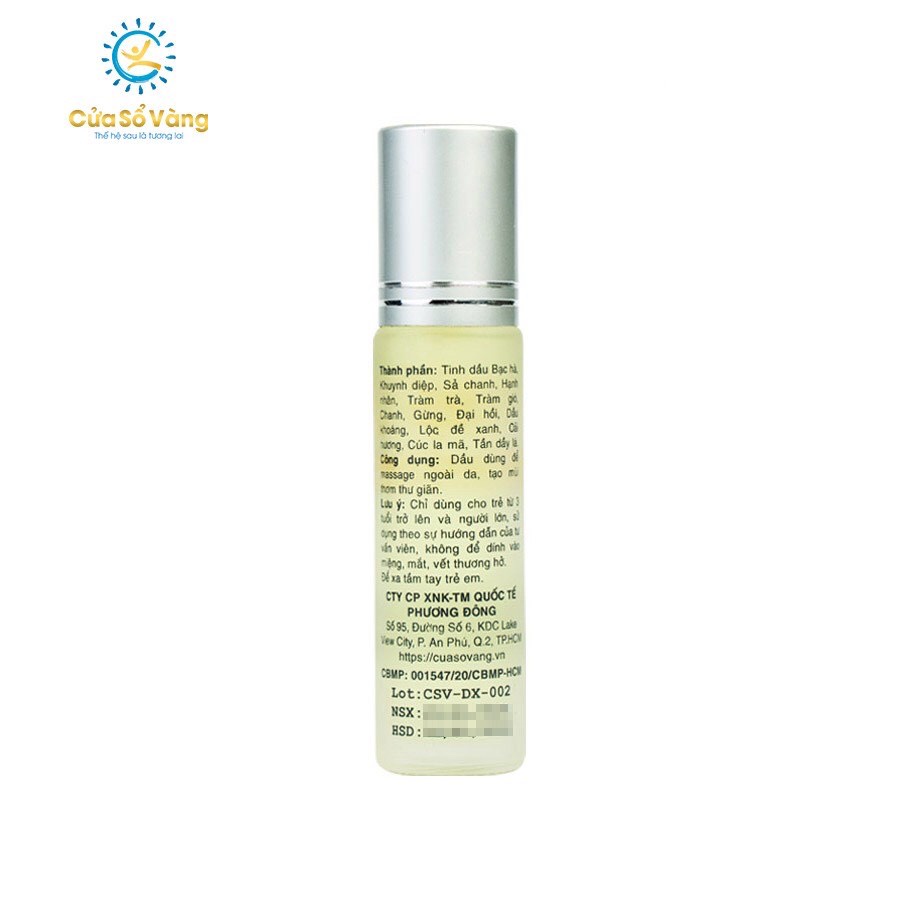 DẦU XOA THẢO DƯỢC CỬA SỔ VÀNG (10ml)THÀNH PHẦN: