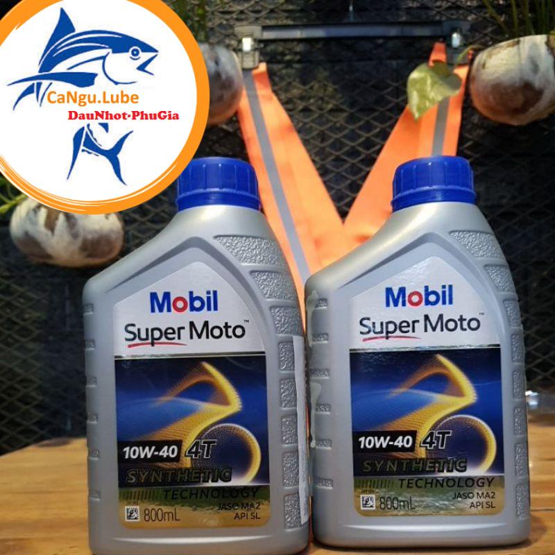 Dầu nhớt xe gắn máy Công Nghệ Bán Tổng Hợp Cao Cấp Nhập Khẩu SingaporeMobil Super Moto 10W-40 4AT Synthetic Technology JASO MA2, API SL, 800ML