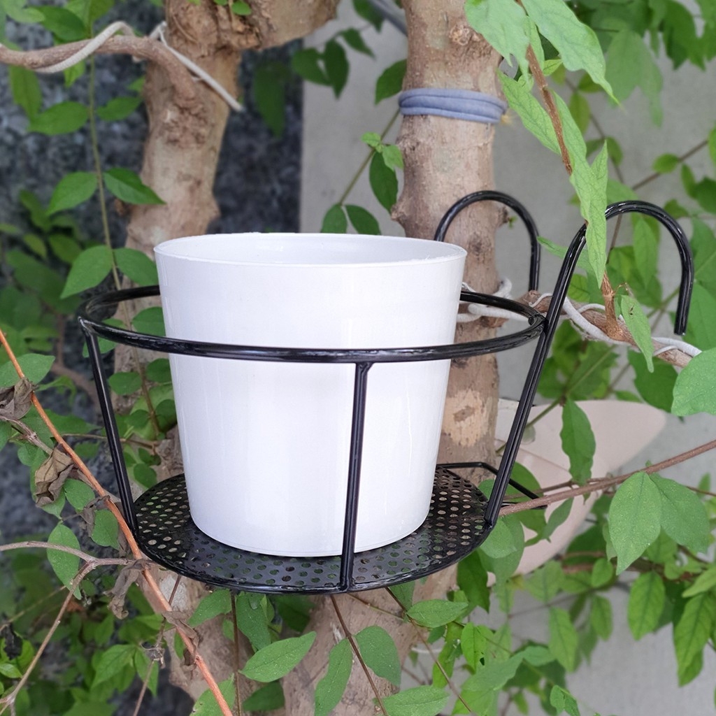 Nhà cửa & Đời sống > Làm vườn > Khác || (Loại dày) 05 móc tròn treo hoa bằng sắt đặc sơn tĩnh điện có lưới đỡ chậu 22cmCòn hàng