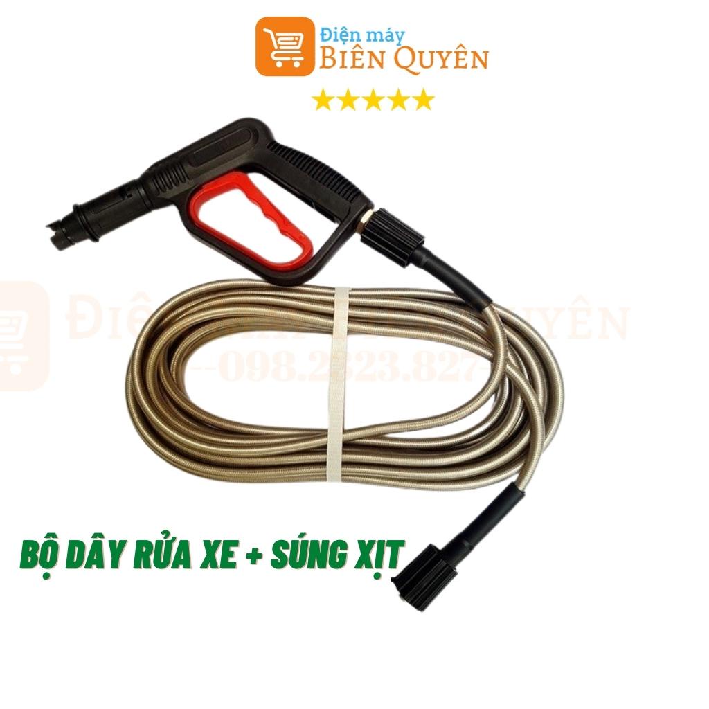 Bộ dây 10M-15M-20M-30M, dây rửa xe và súng xịt - súng rửa xe áp lực cao ren 22mmThông tin sản phẩm: Bộ dây và súng xịt - súng rửa xe áp lực cao là bộ sản phẩm vô cùng tiện dụng cho quý khách có nhu cầu thay mới, bổ sung thay đổi tùy vào mực đích công việc. Bộ sản phẩm này phù hợp với các máy xịt rửa áp lực cao, máy rửa xe áp lực, máy rửa xe mini, máy xịt rửa máy lạnh, vệ sinh nhà cửa, nhà hàng, quán ăn... Bộ sản phẩm vô cùng hữu ích, giúp cho công việc của quý khách đơn giản hơn rất nhiều.