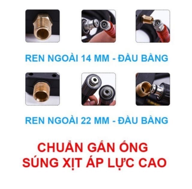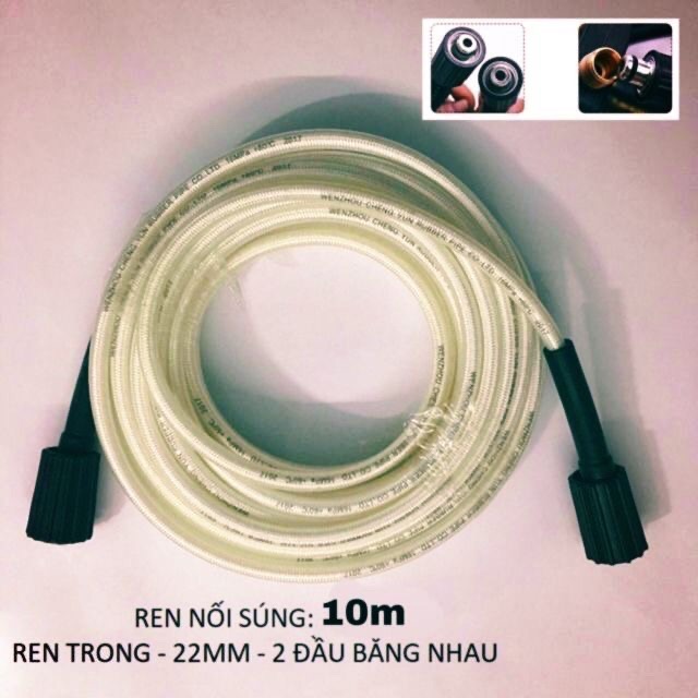 Dây xịt rửa xe áp lực cao 10M trắng chịu được áp lực cao gồm 2 loại:-1 đầu ren 22mm 1 đầu ren 14mm