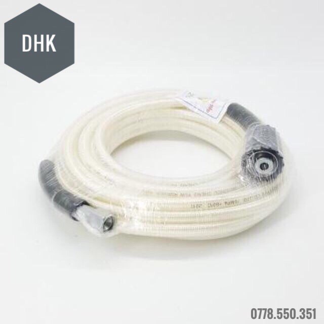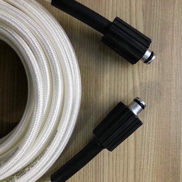 Dây xịt rửa xe áp lực cao 10M trắng chịu được áp lực cao gồm 2 loại:-1 đầu ren 22mm 1 đầu ren 14mm