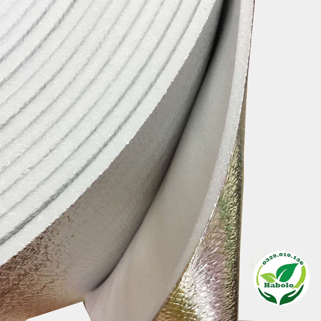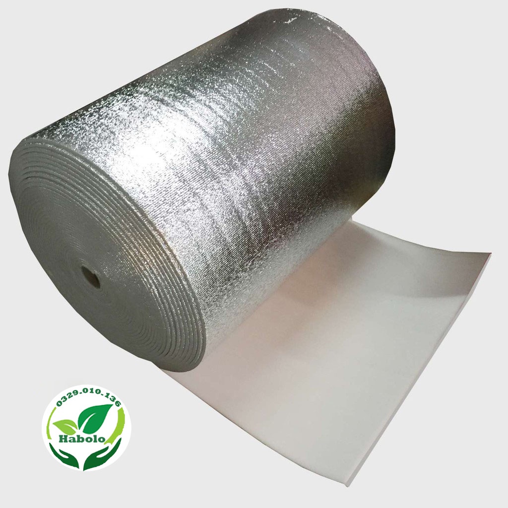 Sản phẩm xốp bạc cách nhiệt - xốp chống nóng được làm từ vật liệu PE Foam, có tráng thêm lớp giấy bạc mỏng ( xi mạ nhôm) trên bề mặt, tráng bạc một mặt và mặt còn lại là lớp mút xốp.
