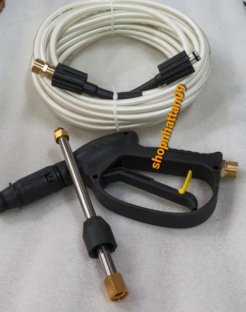 Giới thiệu Bộ dây 15M + súng dài áp lực cao tặng kèm khớp nối đồng ren 22mm dùng cho máy xịt rửa mini gia đình ren to 22mm