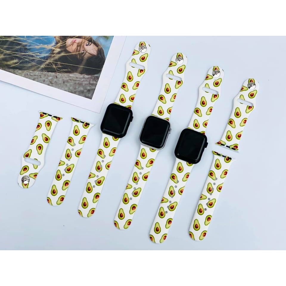 Dây Apple Watch Cao Su Hoạ Tiết Trái Bơ, Trái Thơm , Gấu Mèo , Hoa Cúc Siêu Dễ Thương
