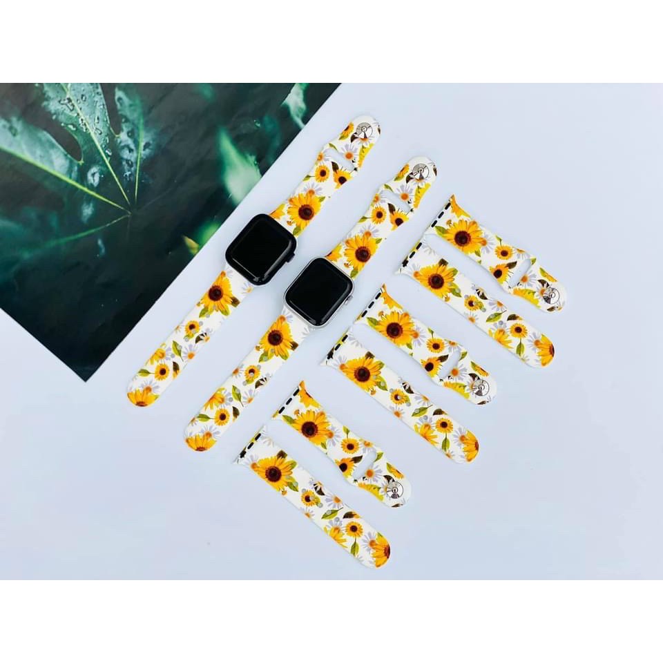 Dây Apple Watch Cao Su Hoạ Tiết Hoa Cúc , Gấu Mèo, Bơ , Thơm Siêu Dễ Thương----------------------------------------------
