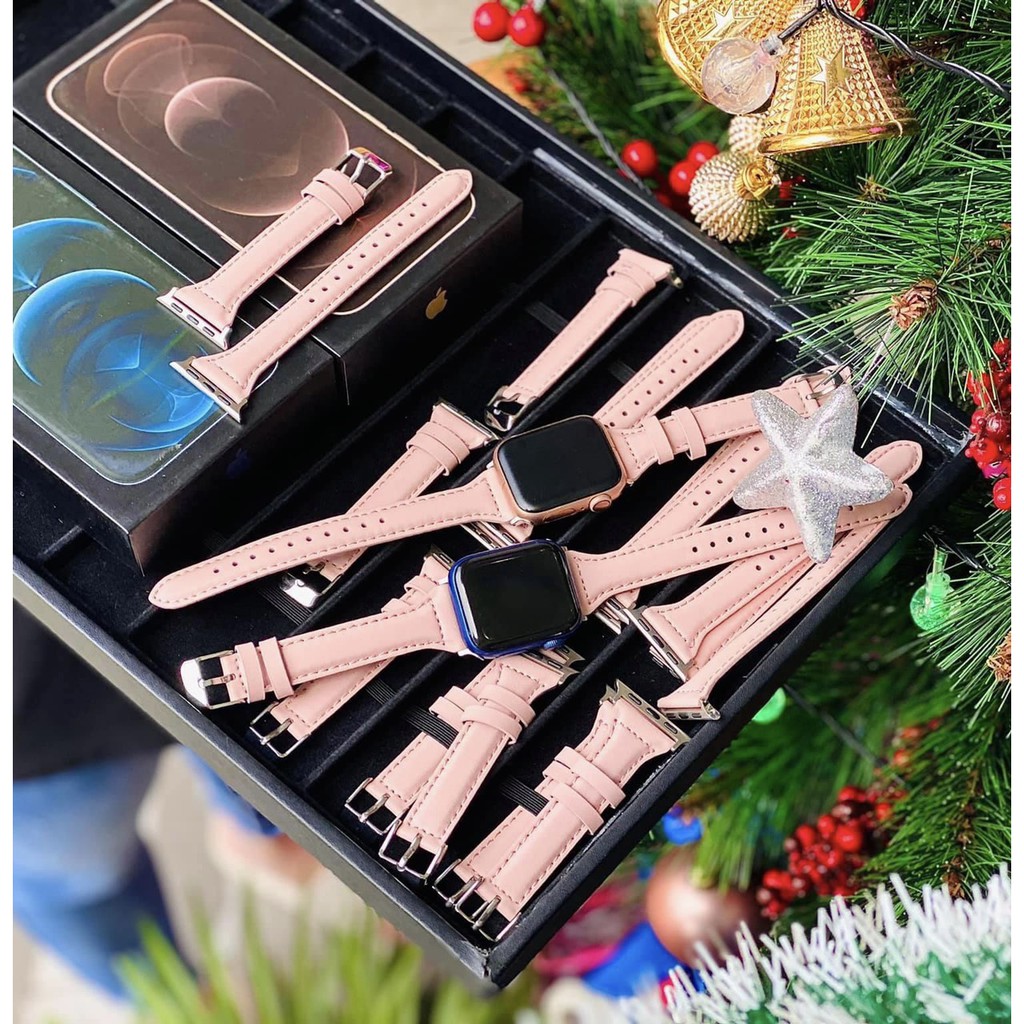 Dây Apple Watch da bản nhỏ màu hồng nude dành cho apple watch năm 2021 Cực Chất