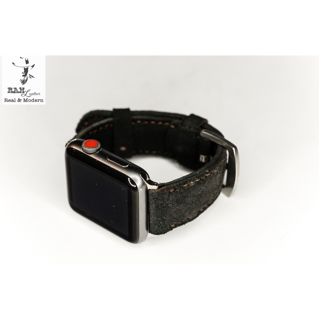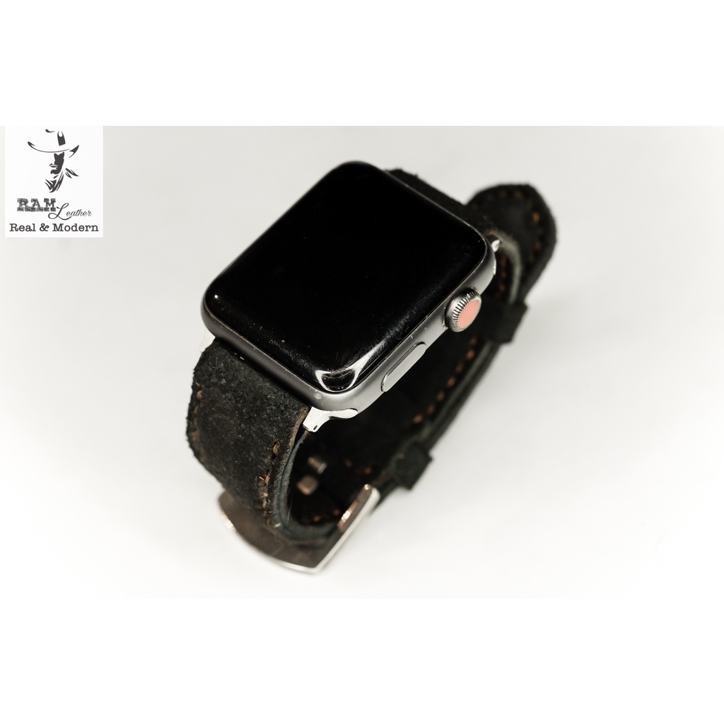 Điện Thoại & Phụ Kiện > Phụ kiện > Phụ kiện cho đồng hồ thông minh || Dây apple watch da bò lộn đen tuyền handmade bền chắc cực đẹp RAM Leather classic 1966 - tặng khóa chốt và adapterCòn hàng