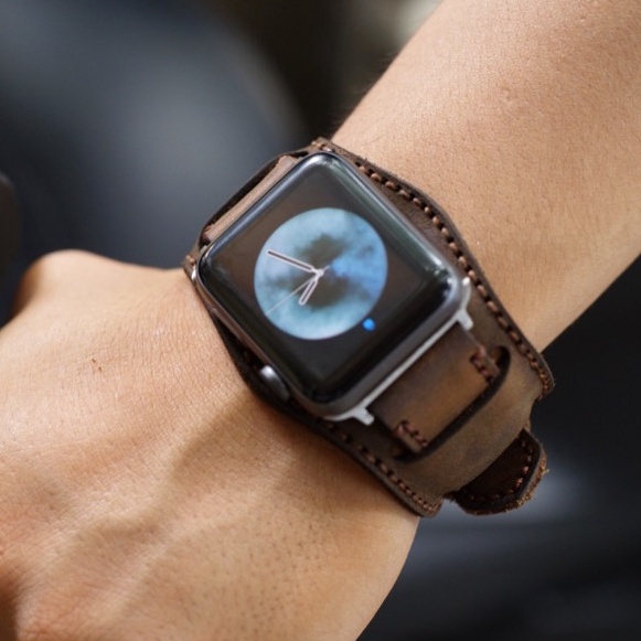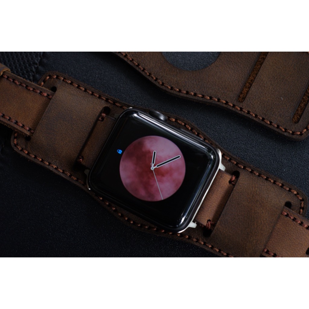 Điện Thoại & Phụ Kiện > Phụ kiện > Phụ kiện cho đồng hồ thông minh || Dây apple watch da bò nâu đất kèm bundstrap chống mồ hôi RAM Leather b2 - tặng khóa chốt và adapterCòn hàng