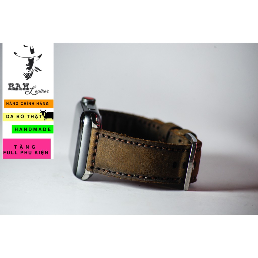 Điện Thoại & Phụ Kiện > Phụ kiện > Phụ kiện cho đồng hồ thông minh || Dây apple watch da bò nâu đất handmade bền chắc cực đẹp RAM Leather classic 1950 - tặng khóa chốt và adapterCòn hàng