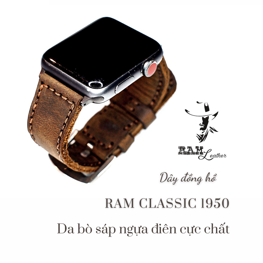 Điện Thoại & Phụ Kiện > Phụ kiện > Phụ kiện cho đồng hồ thông minh || Dây apple watch da bò nâu đất handmade bền chắc cực đẹp RAM Leather 1950 - tặng khóa chốt và adapterCòn hàng