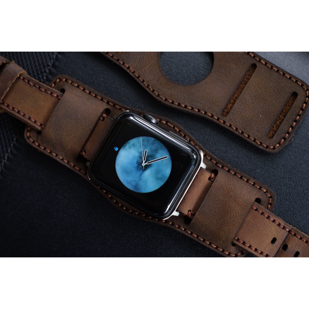 Điện Thoại & Phụ Kiện > Phụ kiện > Phụ kiện cho đồng hồ thông minh || Dây apple watch da bò nâu đất kèm tấm đệm chống mồ hôi RAM Leather Bundstrap b2 - Tặng khóa chốt và adapterCòn hàng