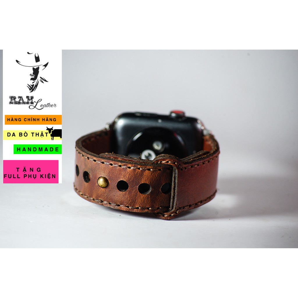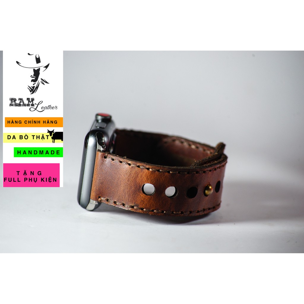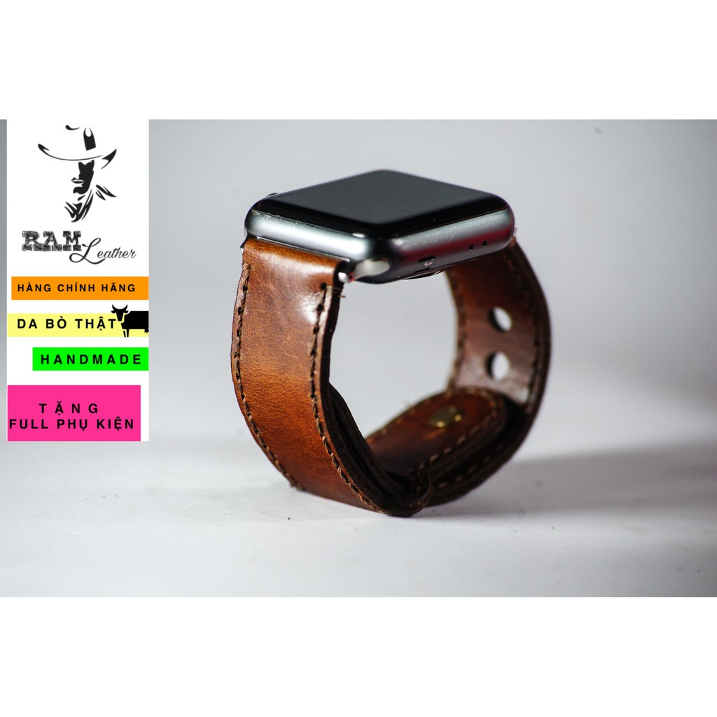 Điện Thoại & Phụ Kiện > Phụ kiện > Phụ kiện cho đồng hồ thông minh || Dây apple watch da bò nâu đỏ handmade bền chắc cực đẹp RAM Leather sang trọng - tặng khóa chốt và adapterCòn hàng