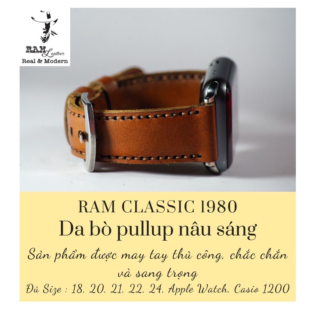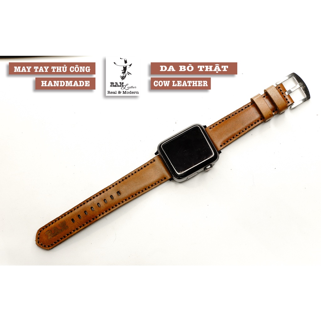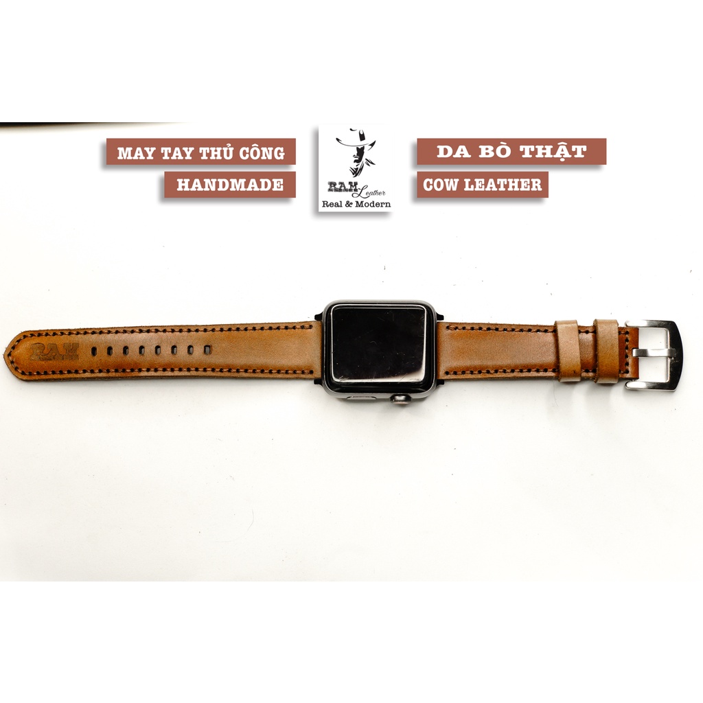 Điện Thoại & Phụ Kiện > Phụ kiện > Phụ kiện cho đồng hồ thông minh || Dây apple watch da bò nâu đỏ handmade bền chắc cực đẹp RAM Leather classic 1980 - tặng khóa chốt và adapterCòn hàng