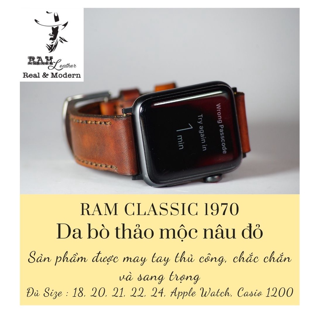 Điện Thoại & Phụ Kiện > Phụ kiện > Phụ kiện cho đồng hồ thông minh || Dây apple watch da bò thật handmade bền chắc cực đẹp RAM Leather classic 1970 nâu sáng - tặng khóa chốt và adapterCòn hàng