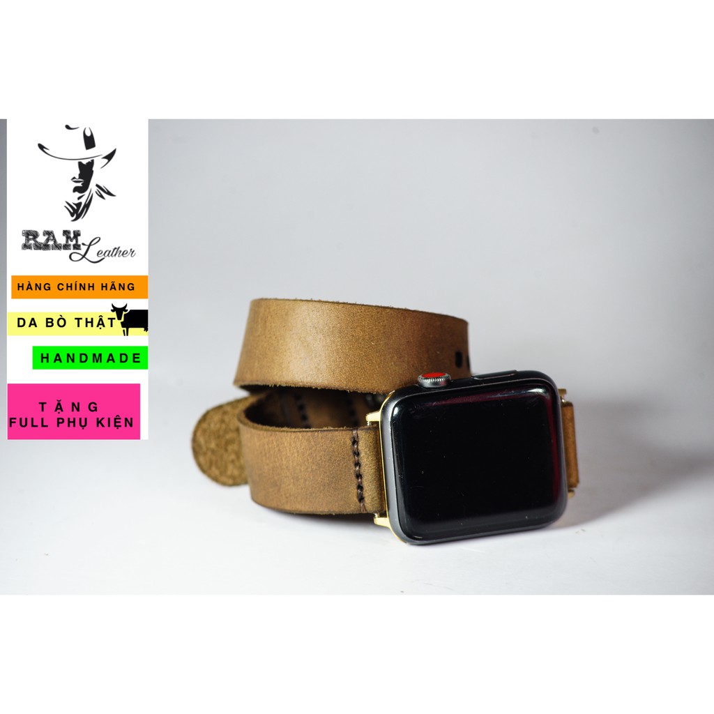 Dây apple watch da bò thật double straps handmade bền chắc cực đẹp cao cấp RAM Leather - tặng khóa chốt và adapter