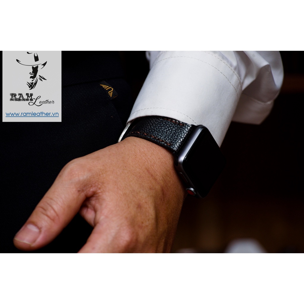 Điện Thoại & Phụ Kiện > Phụ kiện > Phụ kiện cho đồng hồ thông minh || Dây apple watch da bò vân cá mập cực đẹp RAM Leather classic 1956 đen thép - tặng khóa chốt và adapterCòn hàng