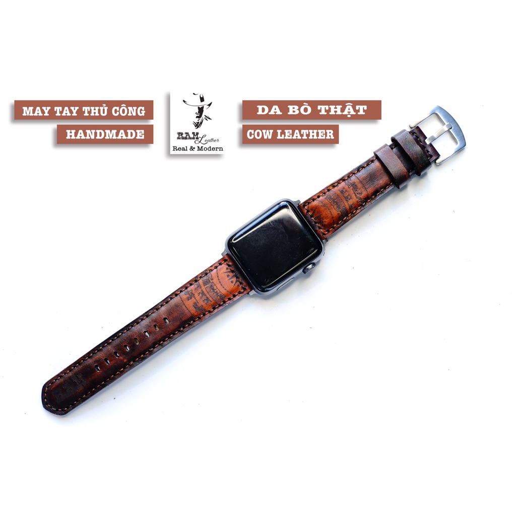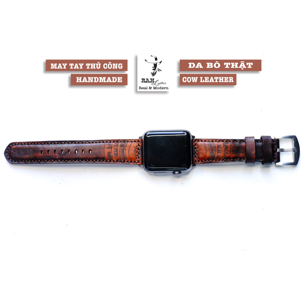 Dây Apple Watch , iWatch , iphone Watch da bò Italia Vegtan cao cấp màu mahogany Trống Đồng Việt Nam RAM Leather