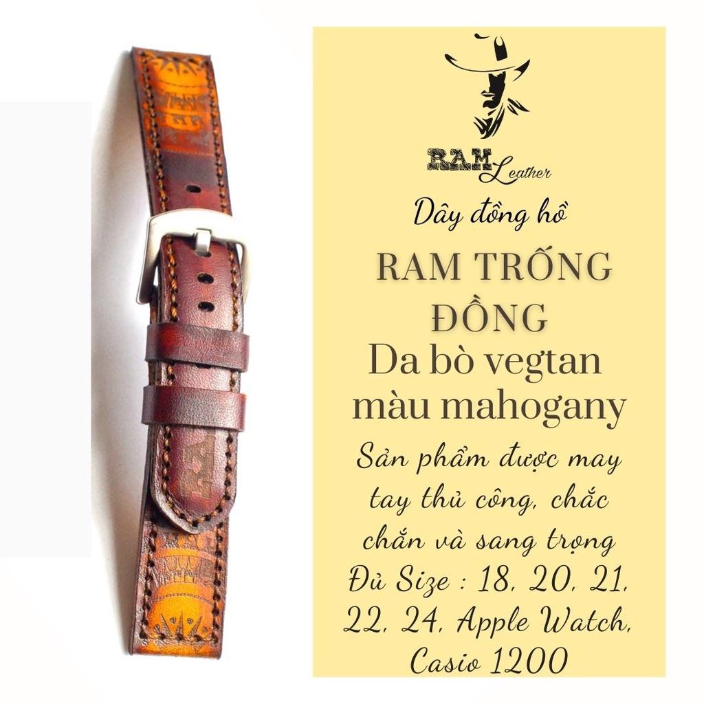 Điện Thoại & Phụ Kiện > Phụ kiện > Phụ kiện cho đồng hồ thông minh || Dây apple watch da bò vegtan Italia cao cấp màu mahogany Trống Đồng Việt Nam RAM LeatherCòn hàng