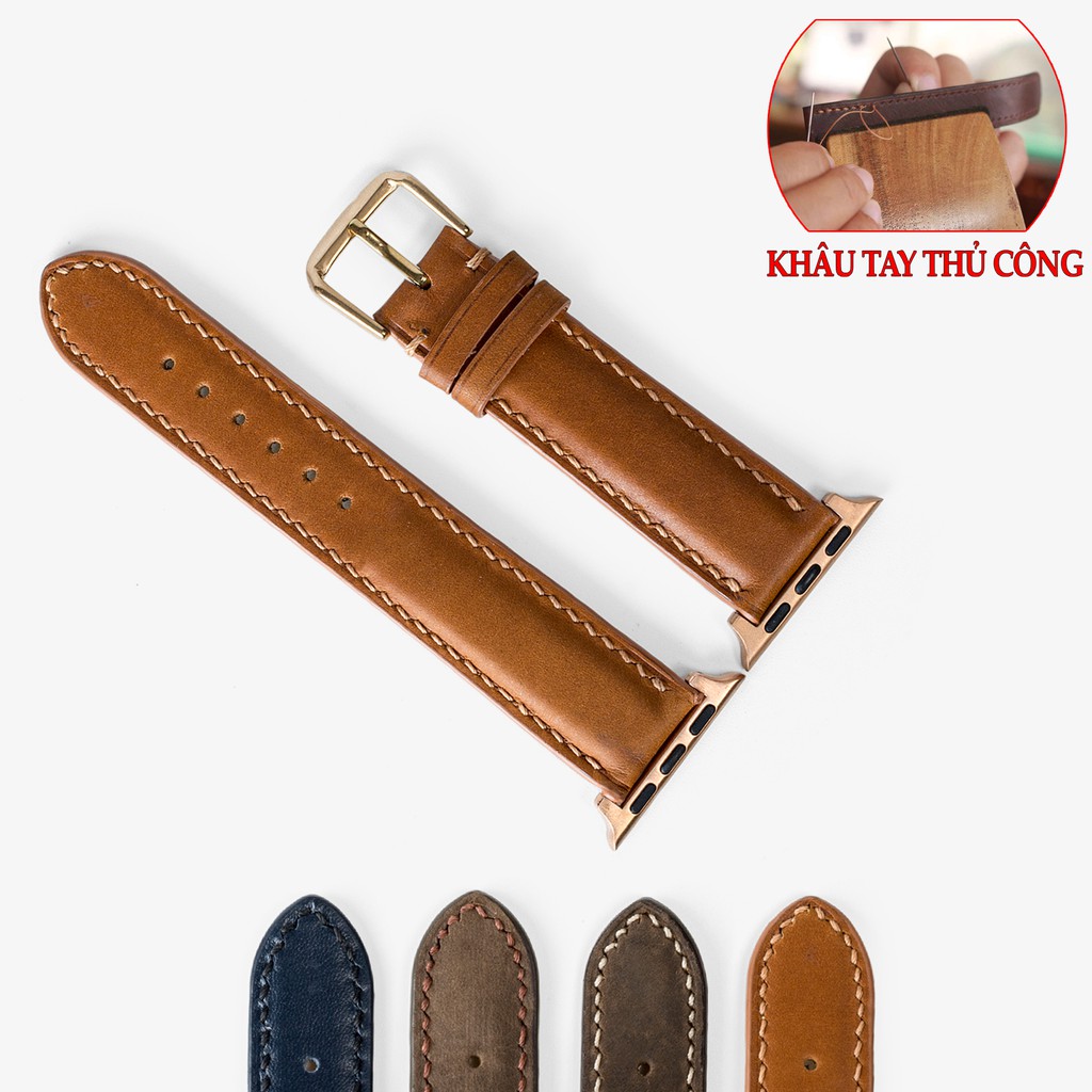 Dây apple watch da bò Vintage-khâu tay thủ công- dây apple watch series 3 series 4 series 5: