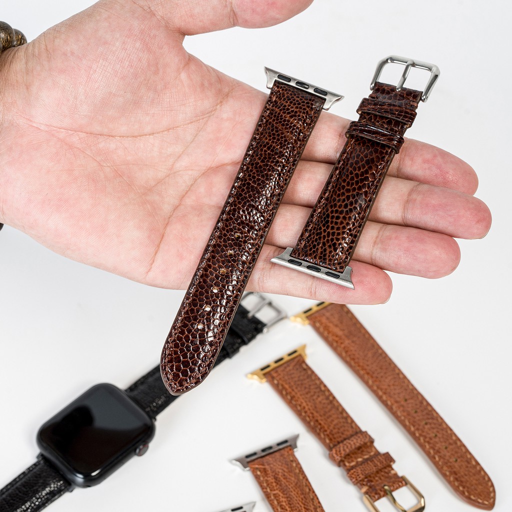 Dây apple watch da đà điểu-khâu tay thủ công D109- dây apple watch series 3 series 4 series 5-Bụi leather