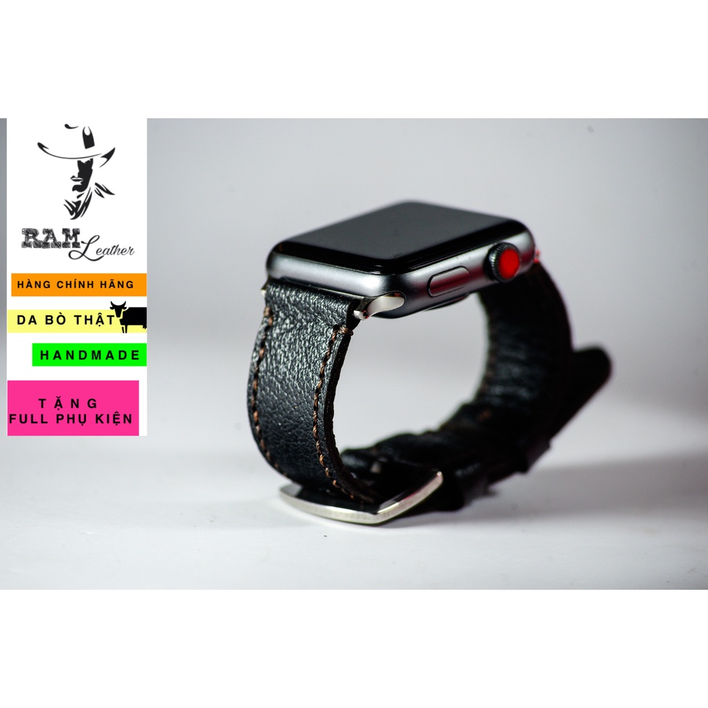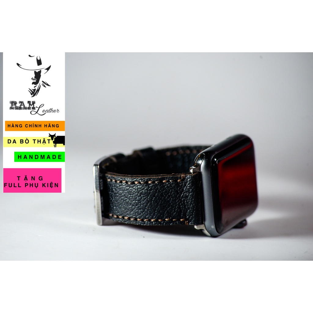 Dây apple watch da dê đen handmade bền chắc cực đẹp by RAM Leather - tặng khóa chốt và adapter