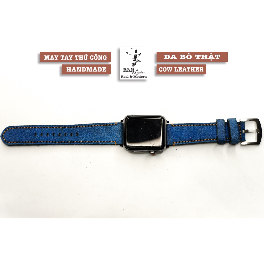 Điện Thoại & Phụ Kiện > Phụ kiện > Phụ kiện cho đồng hồ thông minh || Dây Apple Watch , iWatch , iphone Watch da bò lộn xanh coban RAM Leather classic 1963Còn hàng
