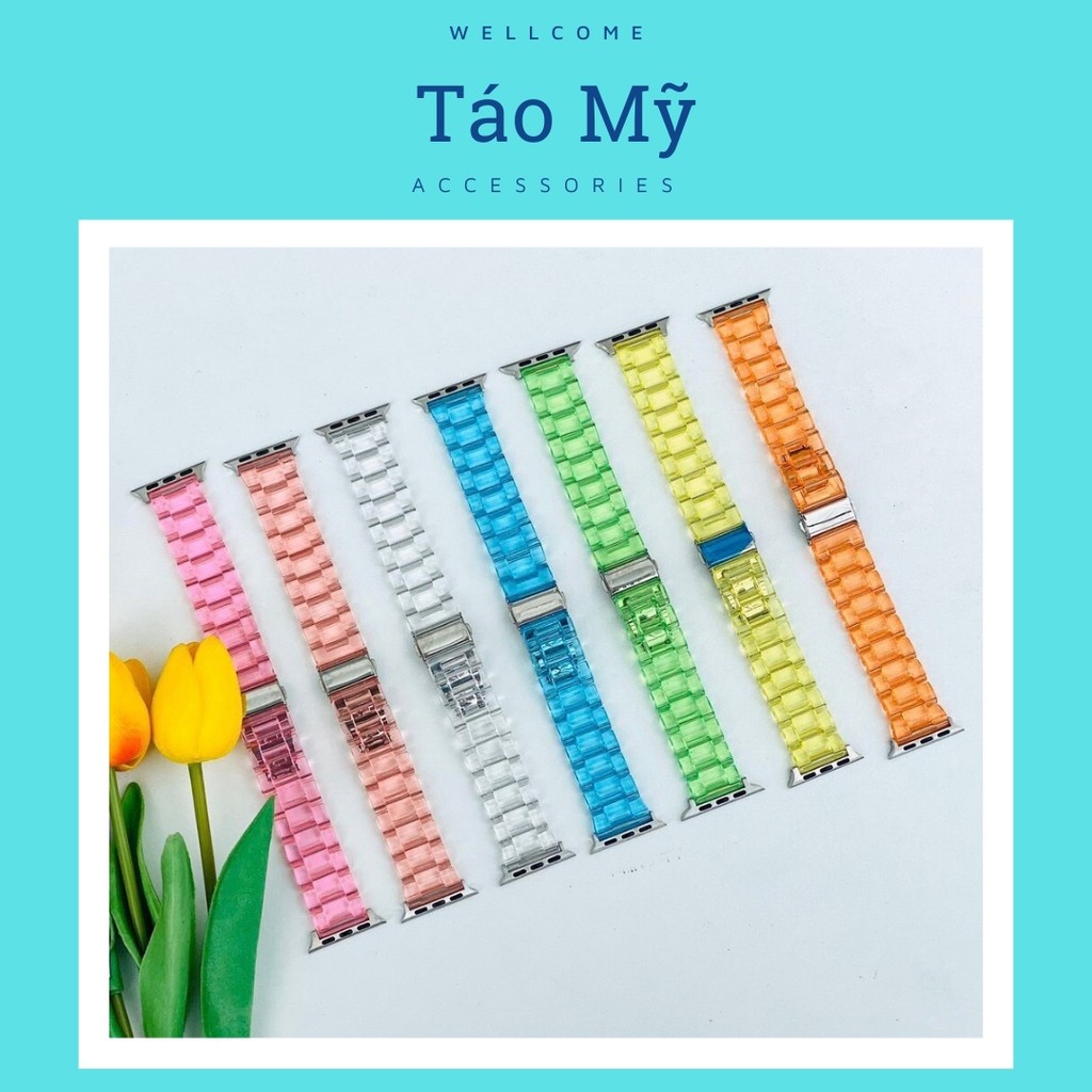 Giới thiệu Dây Apple Watch Nhựa Trong Khoá Gài Đủ Màu Xinh Xắn