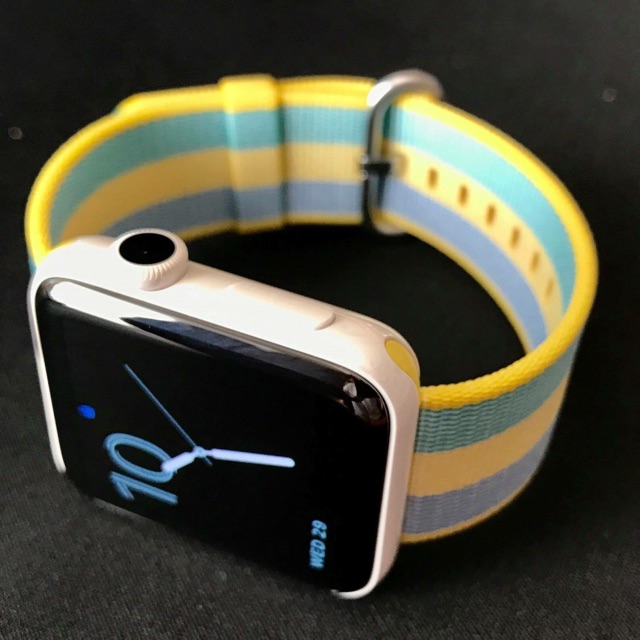 Dây Nylon Woven dành cho 𝗔𝗽𝗽𝗹𝗲𝗪𝗮𝘁𝗰𝗵 seri 1/2/3/4/5• Chất liệu cao cấp, màu Xanh bơ phối sọc vàng cá tính , nổi bật