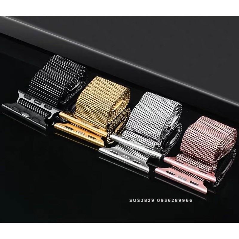 🍎Dây đeo phụ kiện apple watch milanse loop dạng lưới được làm bằng thép không gỉ🍎Khoá bằng nam châm hít chặt cho cảm giác an toàn và thoải mái