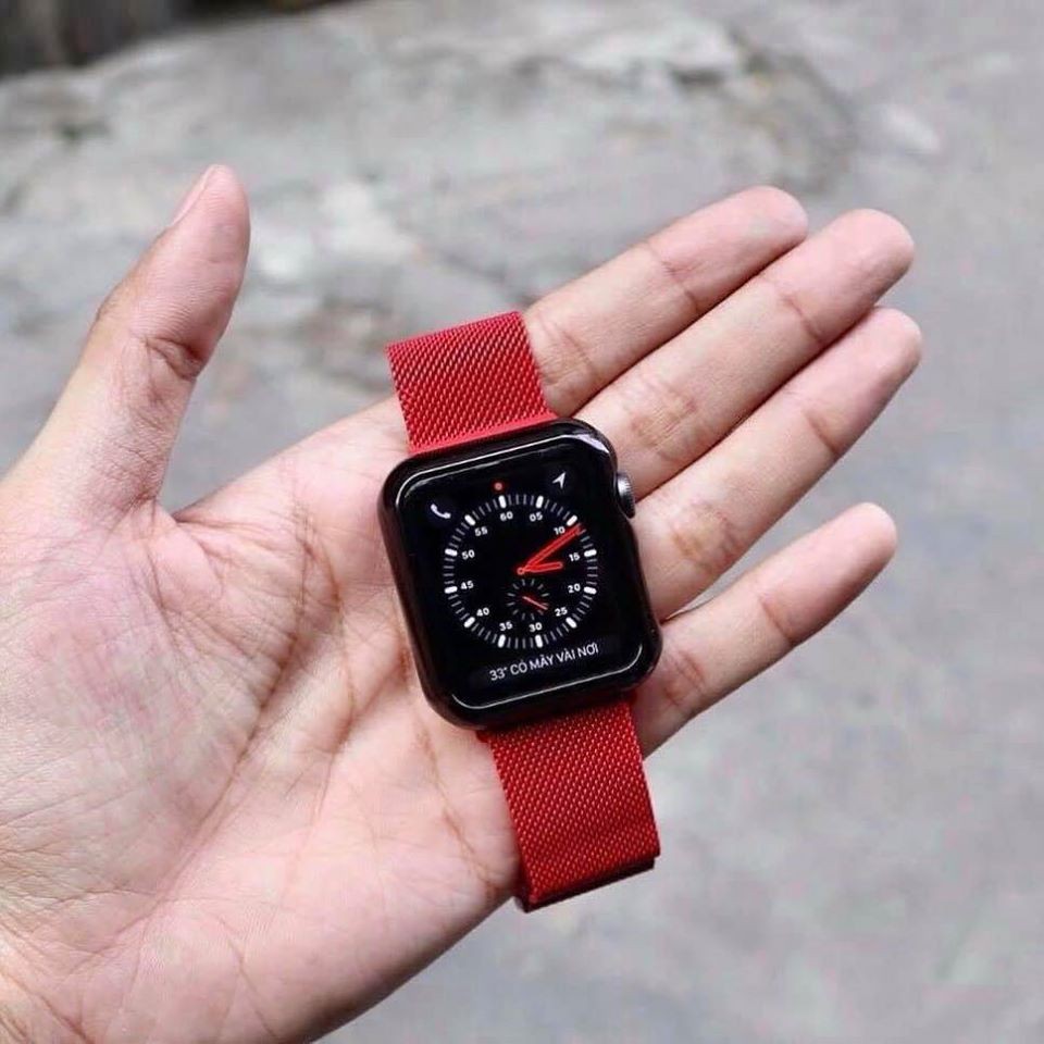 Lên tay mẫu thép milanese màu ĐỎ siêu đẹp⌚️Dây Apple watch series 1/2/3/4 . Có Full size 38,40,42,44mm