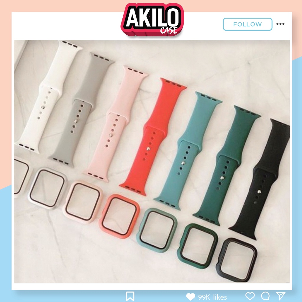 Dây Apple watch và ốp kính đồng hồ thông minh cao su thời trang cao cấp Series 1/2/3/4/5/6/SE AkiloCaseCOMBO bộ đôi sản phẩm HOT