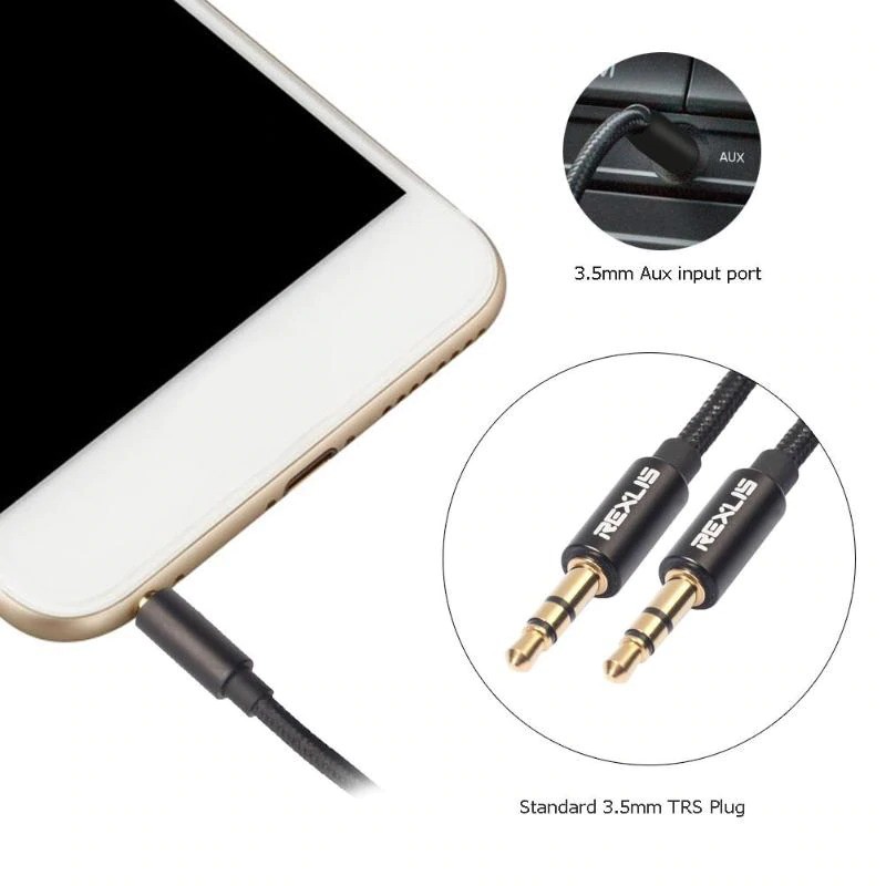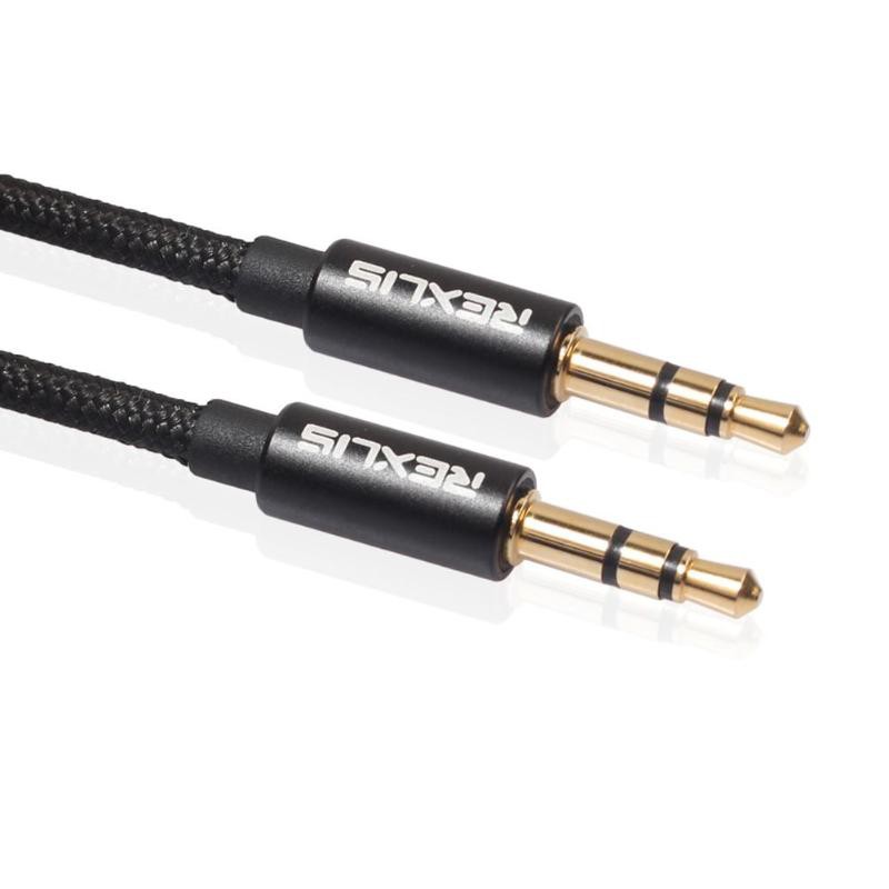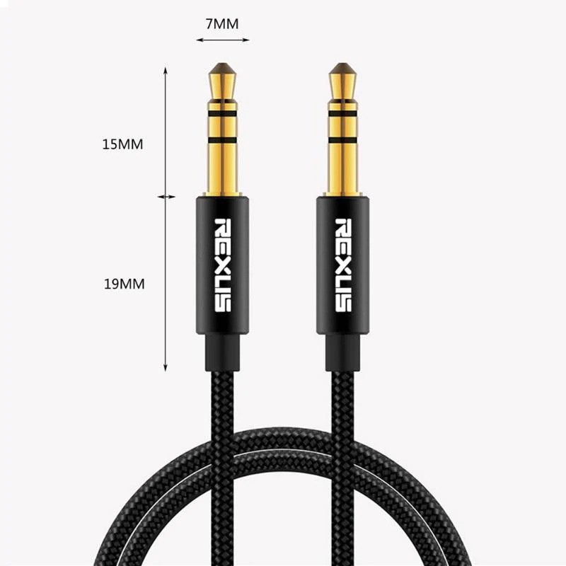 Dây cáp AUX Rexus 2 đầu 3.5mm dùng nối điện thoại/máy tính/Mp3 player... vào loa/dàn âm thanh.- Sản phẩm chất lượng cao với dây bọc vài dù dày tránh đứt gãy.