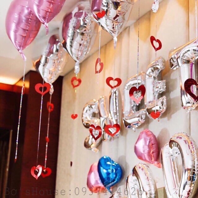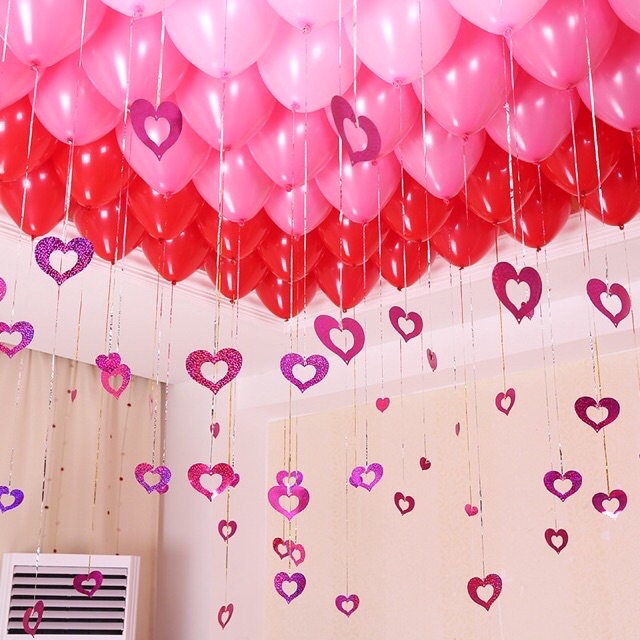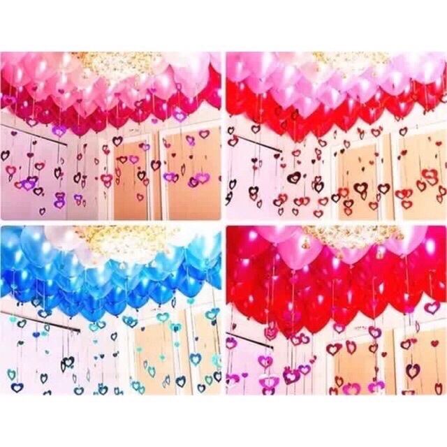 💥 loại dây buộc bóng hình trái tim này chuyên để cho các bạn tự tay trang trí phòng tân hôn , trang trí phòng cưới , trang trí sinh nhật . Dây cột bóng trái tim này sử dụng rất dễ : các bạn bơm bóng lên dùng băng dính dán vào bóng rồi đính lên trần nhà là thành hình trang trí đẹp lung linh nha .