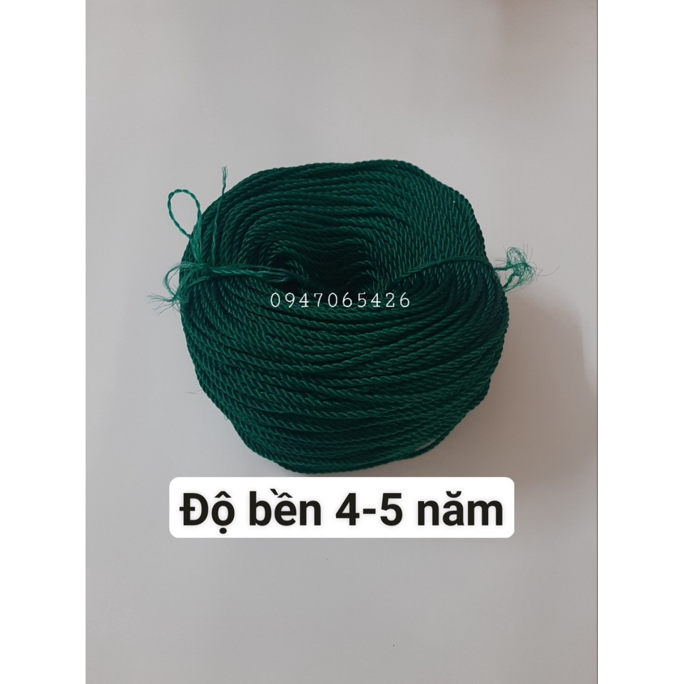 Dây Cước, Dây Buộc Giàn Leo, Dây Treo Trái, Treo Nông Nghiệp+ Chất liệu : hạt nhựa nguyên sinh HDPE nên rất dẻo và dai không thấm nước, khả năng chịu nắng mưa trên 3năm, lưới có độ đàn hồi cao