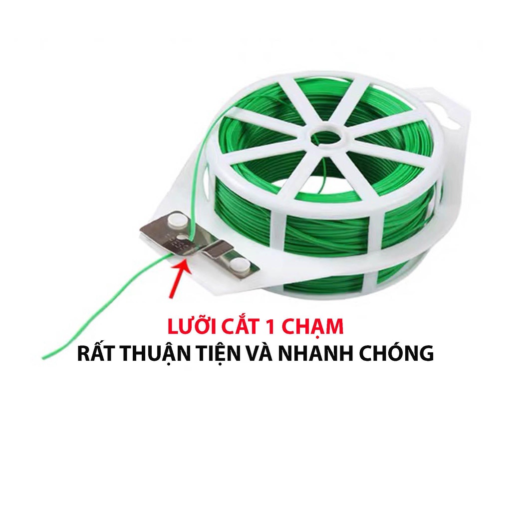 Dây Buộc Kẽm Bọc Nhựa PP Siêu Bền - Dùng để buộc cây, uốn cành cây, có lưỡi cắt tự động vô cùng tiện lợi.✔️ Màu sắc: Xanh