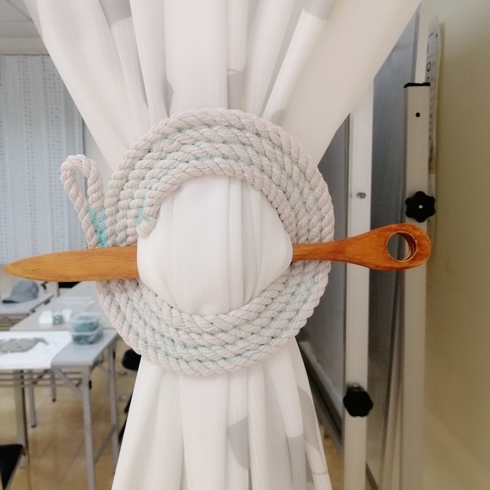 Dây buộc rèm cửa bằng vải đính kèm thanh gỗ tràm để cố định.Sử dụng linh hoạt, giúp cố định rèm.