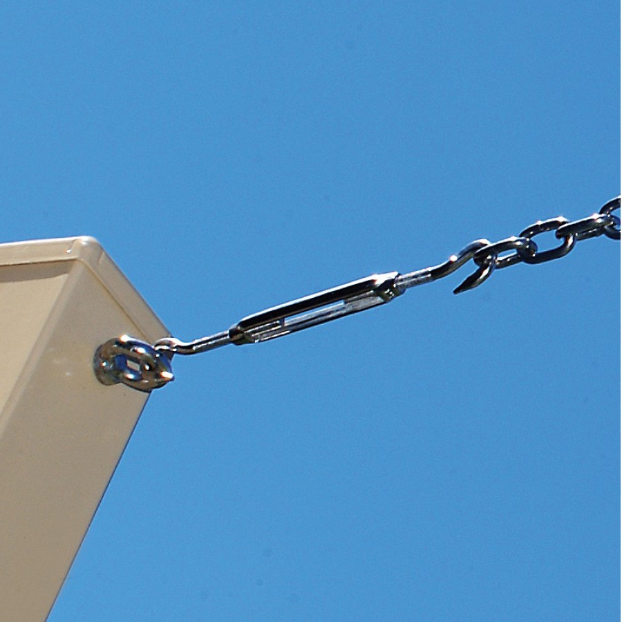 + Trường hợp 2: nhà bạn có sân rộng tính làm giàn dây leo cho mát, dùng cáp bọc nhựa 8mm để giăng làm khung cho dây leo (ở giữa là lưới), chiều dài của khung là 10 mét. Lúc này thì bạn phải dùng tăng đơ lớn hơn 3 cấp mới đủ sức căng: tăng đơ 14mm (8 > 10 > 12 > 14)