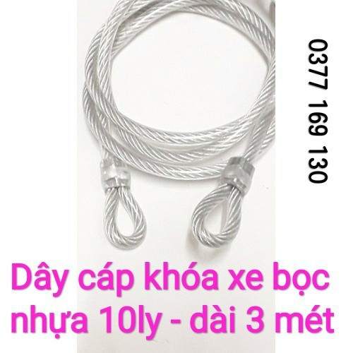 Dây cáp bọc nhựa chống cắt khóa xe 10 ly 3 mét cực kỳ chắn chắn