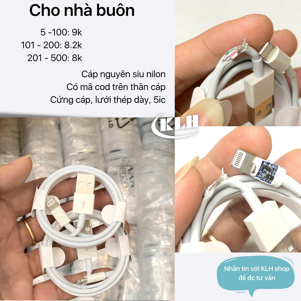 Dây cáp chân Lightning sạc nhanh KLH 3i cho phone, máy tính bảng dây sạt Ip 5/6/6s/6p/7/8/x/xs/11/12/13 - KLH shop