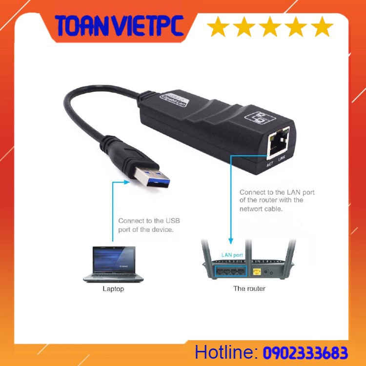 Dây Cáp Chuyển Đổi USB 3.0 Sang Cổng Mạng Lan RJ45 10-100-1000 MbpsĐể có tốc độ mạng chuẩn 1gbs cổng kết nối máy tính thiết bị chuẩn usb 3.0