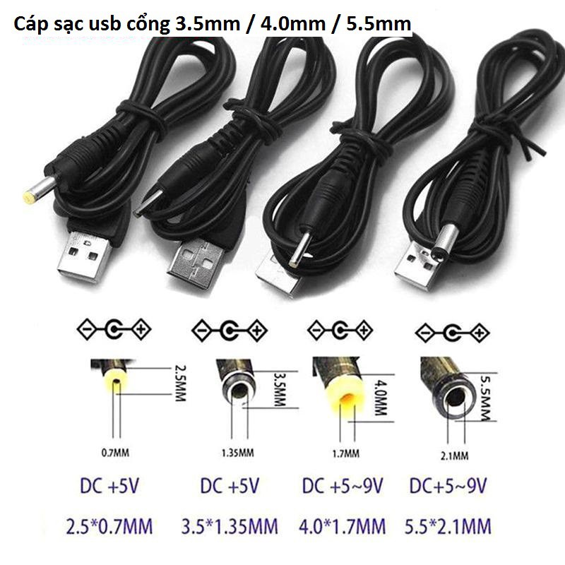 Giới thiệu Dây Cáp Chuyển Đổi Usb Sang Cổng 3.5 / 4.0 / 5.5 mm 5v Dc Tiện Dụng - Dây sạc chuyển đổi 3.5mm 4.0mm 5.5mm USB