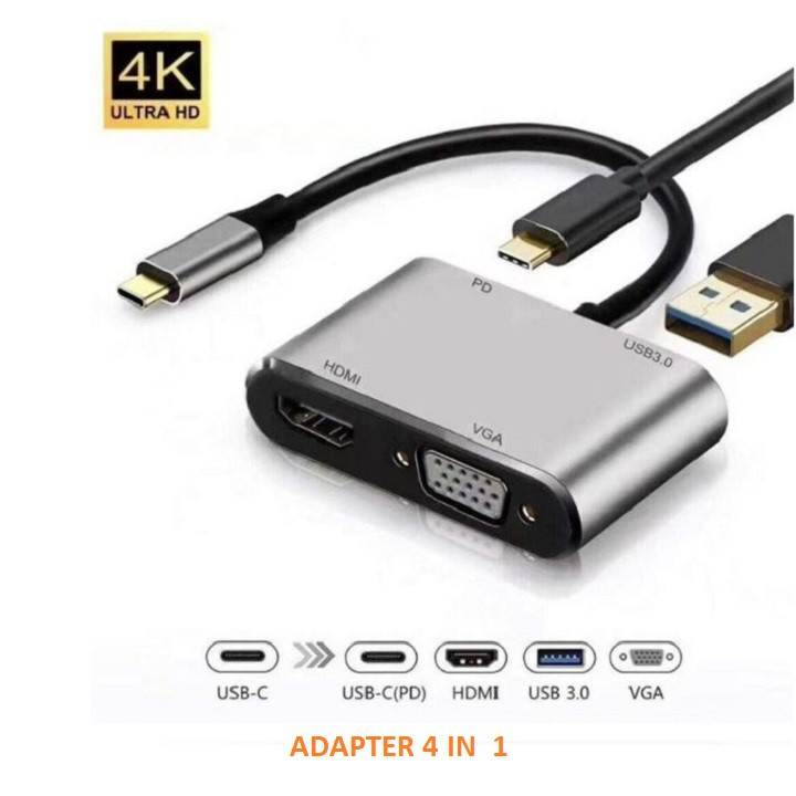 Máy tính & Laptop > Thiết Bị Lưu Trữ > USB & OTG || Dây Cáp Chuyển Đổi USB Type-c Ra 4 cổng HDMI/ VGA/ USB Và Cổng Sạc Hỗ Trợ Chế Độ Dex - UHV41160Còn hàng
