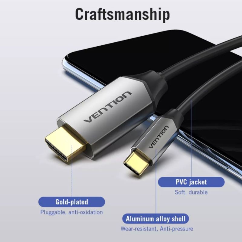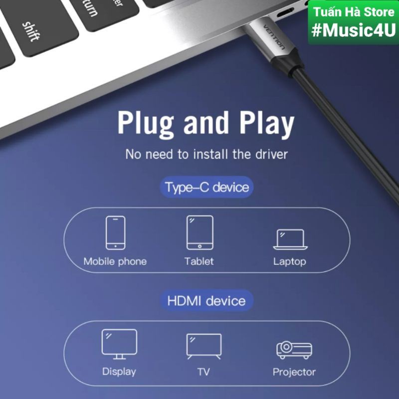 Cáp chuyển đổi USB Type C sang HDMI 4K 60Hz cho LG, Huawei, Samsung Dex, Laptop, Macbook, Vention [Music4U]Thương hiệu: Vention