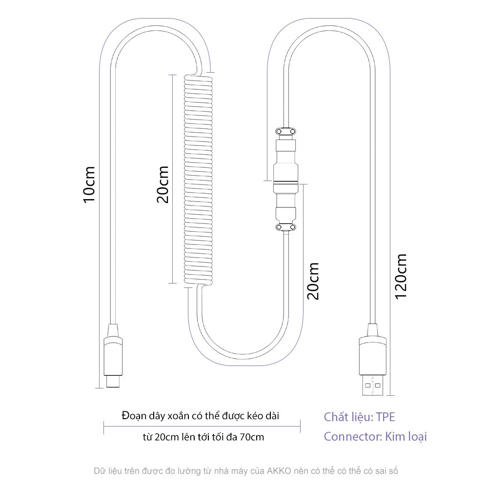 Dây cáp custom AKKO USB Type C (Matcha Red Bean / OceanStar / Midnight / Macaw / Neon)